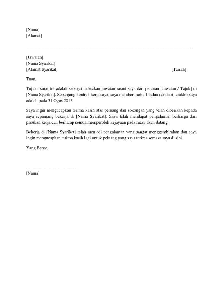Contoh Surat Berhenti Kerja Surat Perletakan Jawatan
