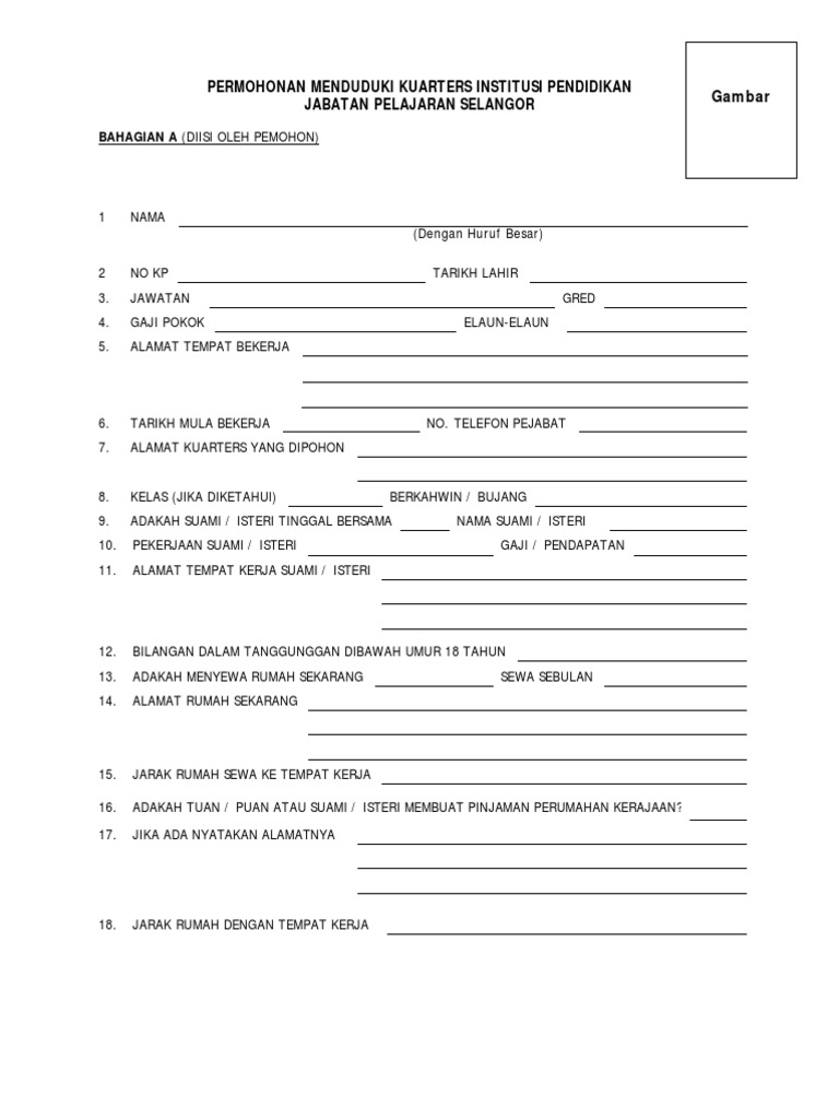 Borang Permohonan Menduduki Kuarters Kerajaan Pdf