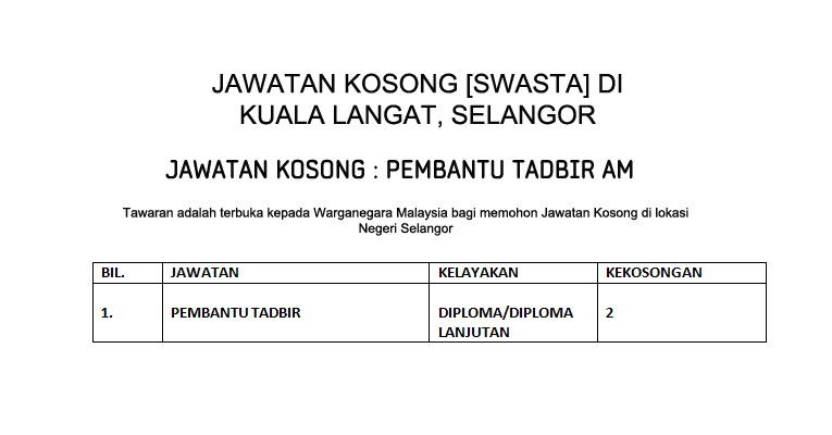 Jawatan Kosong Pembantu Tadbir Am 2 Kekosongan Selangor E Semak Com