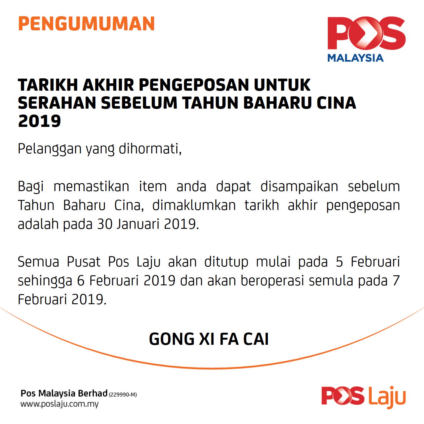 Pos Malaysia Berhad On Twitter Makluman Tarikh Akhir Pengeposan Pos Laju Sempena Perayaan Tahun Baru Cina 2019