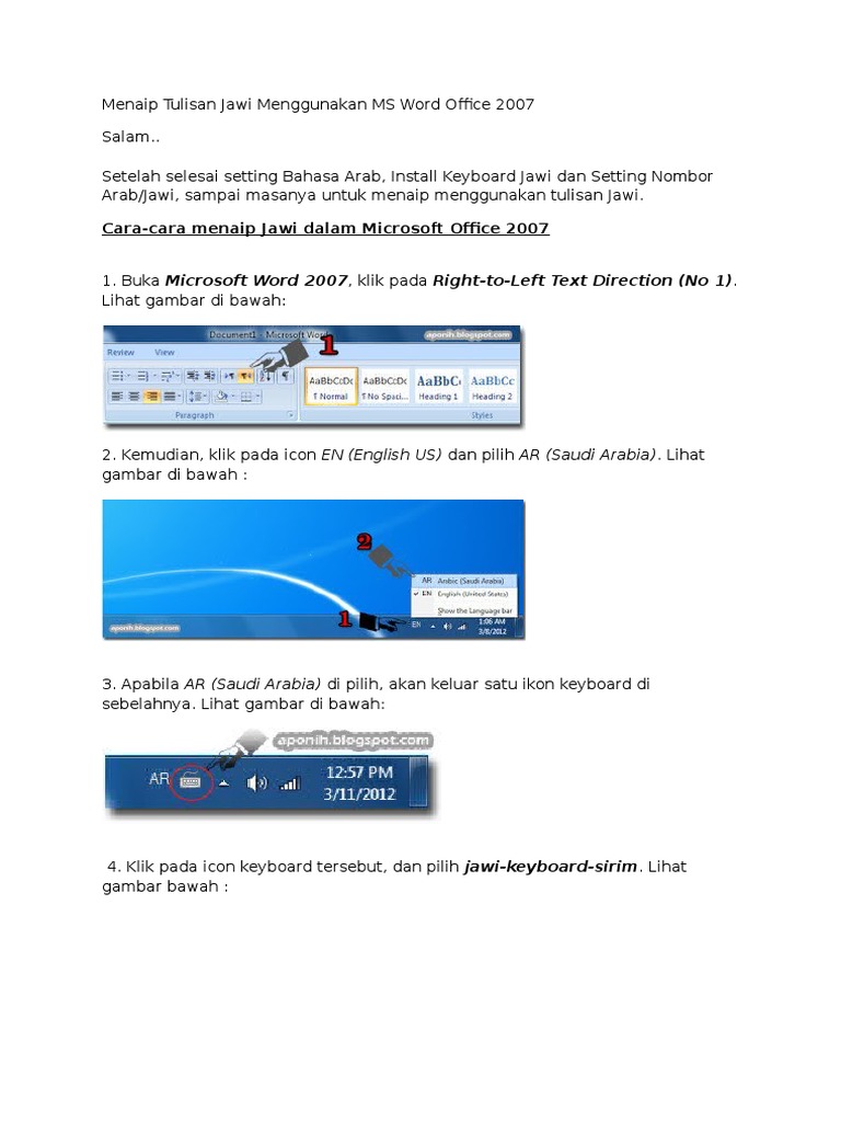Aponih Tutorial 4 Menaip Tulisan Jawi Menggunakan Ms Word Office 2007