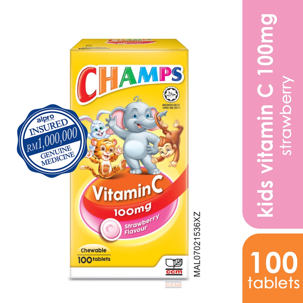 Whs Champs Vitamin C 100mg Chewable Tablets Strawberry 100s Shopee Malaysia