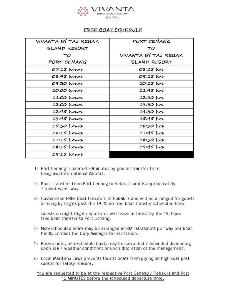 Boat Schedule Picture Of Vivanta Langkawi Rebak Island Tripadvisor
