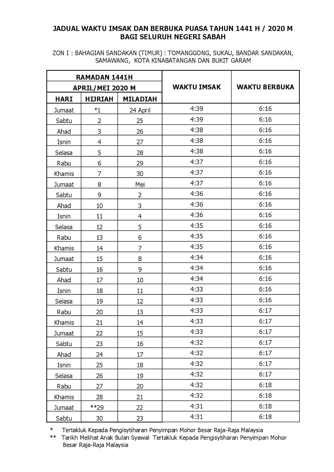 Waktu Imsak Dan Berbuka Puasa Negeri Sabah 2020 Sii Nurul Menulis Untuk Berkongsi